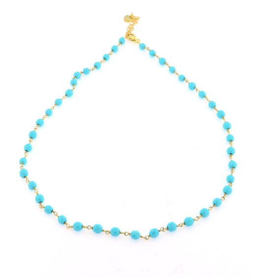 Collana argento 925 placcata oro giallo con palline turchesi sfaccettate