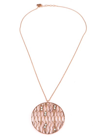 catena in argento placcato oro rosa con ciondolo cristalli rotondo traforato