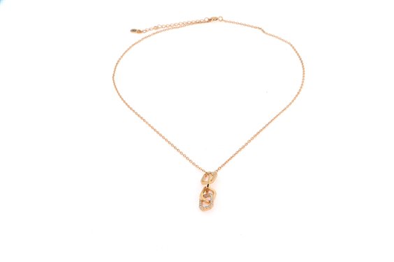 collana in argento placcato oro rosa con pendente a maglia con zirconi