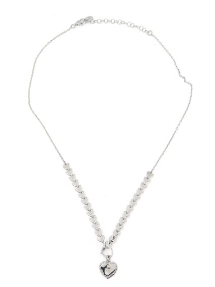 collana in argento rodiato con ciondolo a cuore con zirconi