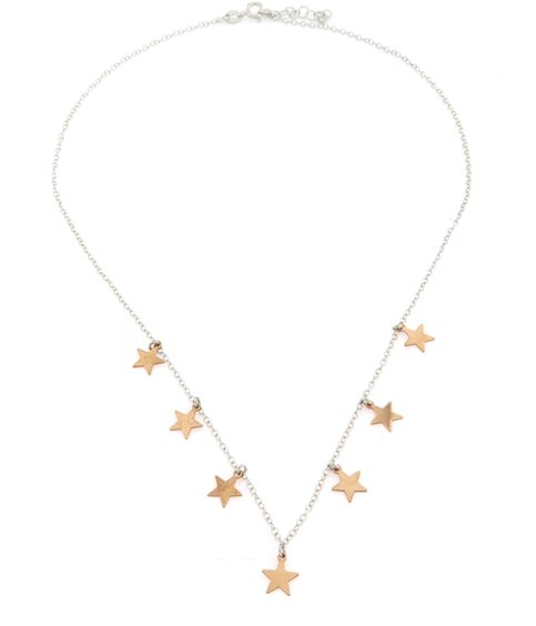 collana in argento rodiato con 7 ciondoli stella placcati oro rosa