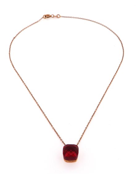 Collana argento 925 placcato oro rosa con agata rossa taglio briolè