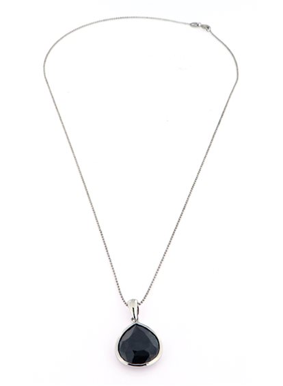 collana in argento 925 con pendente in agata nera a forma di goccia