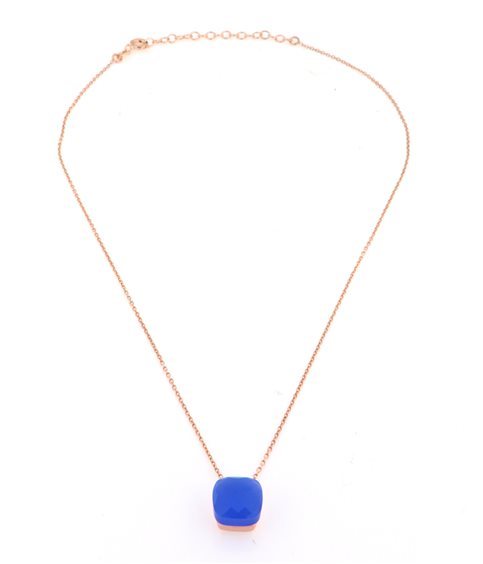 collana in argento placcato oro rosa con ciondolo in agata color bluette