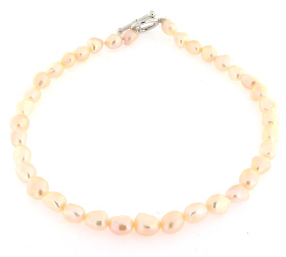collana di perle rosa naturali irregolari d'acqua dolce diam 9 mm con bellissimo fermaglio in argento 925 con chiusura a T