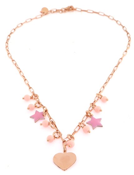 COLLANA ARGENTO 925 PLACCATO ORO ROSA CON STELLE SMALTATE E QUARZI ROSA