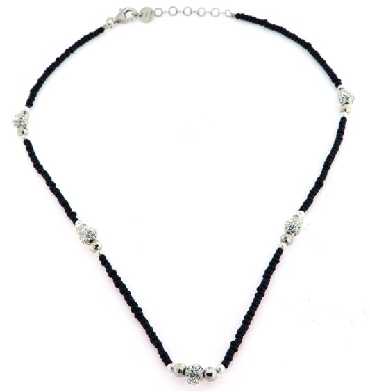 COLLANA ARGENTO 925 CON CRISTALLI NERI E PALLINE CON ZIRCONI