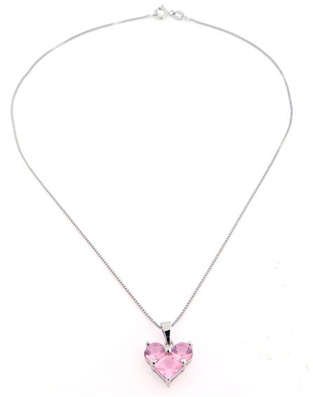 COLLANA ARGENTO 925% CON PENDENTE A FORMA DI CUORE CON ZIRCONI ROSA
