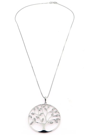 COLLANA ARGENTO 925% CIONDOLO A FORMA DI ALBERO DELLA VITA CON ZIRCONI
