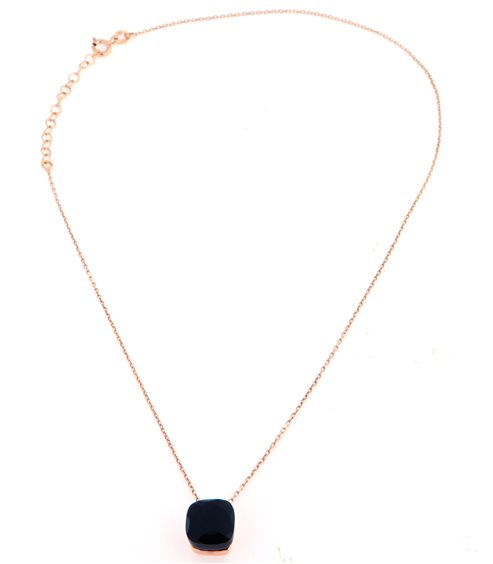 COLLANA ARGENTO 925 PLACCATA ORO ROSA CON AGATA NERA MODELLO NUDO POMELLATO