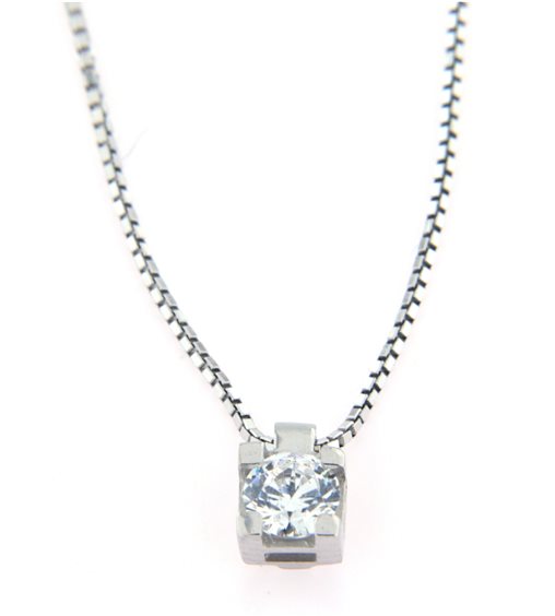 COLLANA ORO BIANCO 750 CON PUNTO LUCE ZIRCONE . LUNGHEZZA 42 CM E PESO 1,60 GR