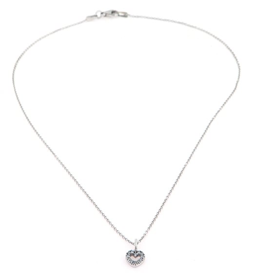 COLLANA ORO BIANCO 750% A FORMA DI CUORE CON ZIRCONI