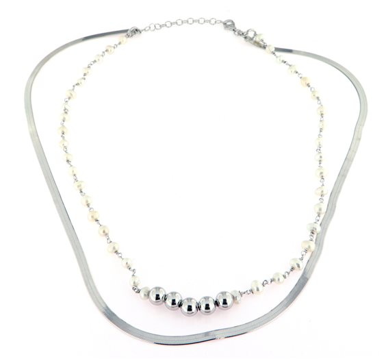 COLLANA DOPPIA ARGENTO 925 CON PERLE