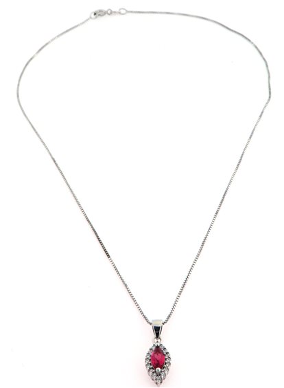 COLLANA ARGENTO 925 CIONDOLO CON ZIRCONI BIANCHI E ZIRCONE ROSSO
