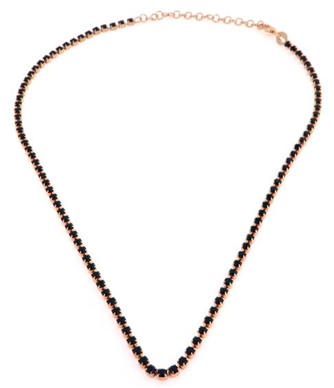 COLLANA TENNIS ARGENTO 925 PLACCATO ORO ROSA CON ZIRCONI NERI