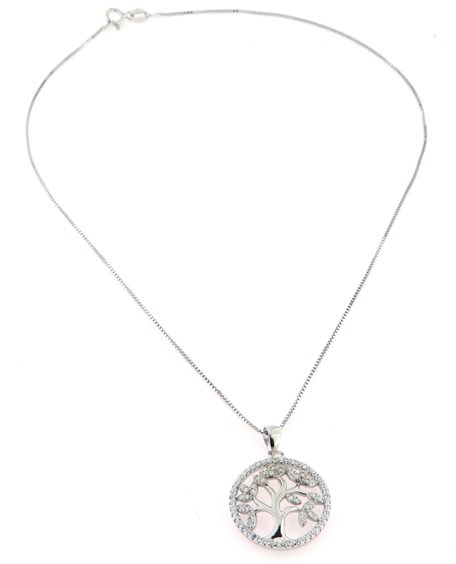 COLLANA ARGENTO 925 CON CIONDOLO A FORMA DI ALBERO DELLA VITA CON ZIRCONI