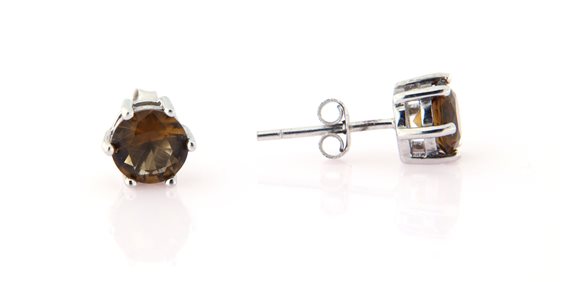 orecchini lobo in argento 925 rodiato con zircone color marrone. Griffati