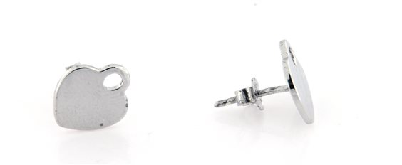 orecchini in argento rodiato 925 a forma di cuore piatto lucido. Chiusura a pressione