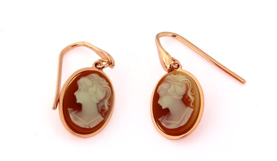 Orecchini ad amo in argento 925 placcato oro rosa con cammeo
