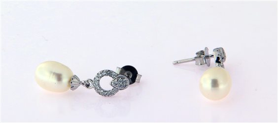 orecchini in argento 925 con zirconi e perla ovale naturale