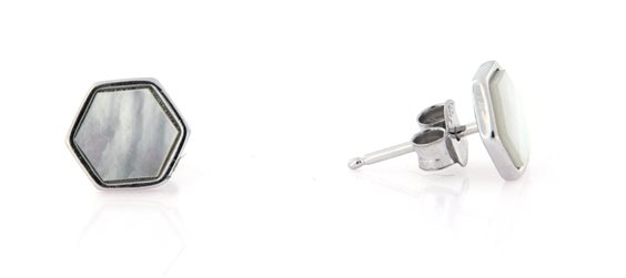Orecchini lobo argento 925 in madreperla di forma esagonale