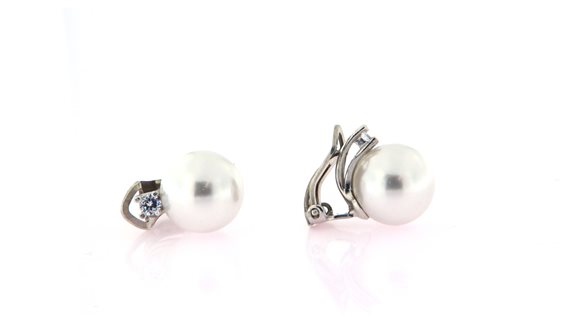 Orecchini chiusura a clip argento 925 con zircone e perla