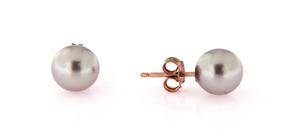 orecchini lobo in argento placcato oro rosa con perla grigia