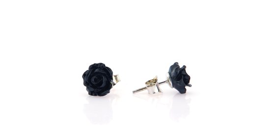 Orecchini a lobo argento 925 a forma di rosellina nera