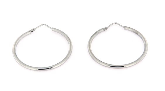 Orecchini a cerchio in argento rodiato a canna sottile liscia diametro 3 cm
