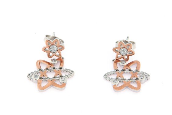 orecchini in argento bianco e placcato oro rosa con zirconi. Chiusura a pressione