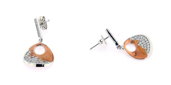 orecchini in argento placcato oro rosa con zirconi