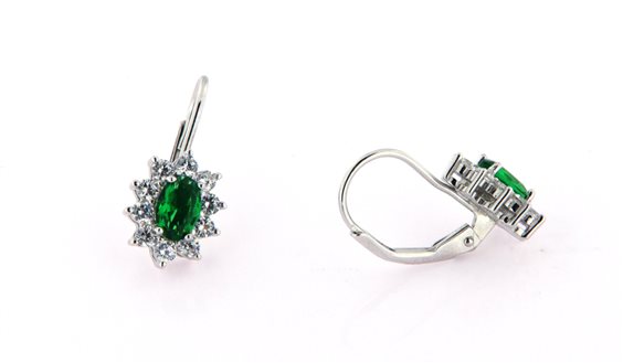 Orecchini chiusura monachella argento 925 con zirconi bianchi e verde centrale