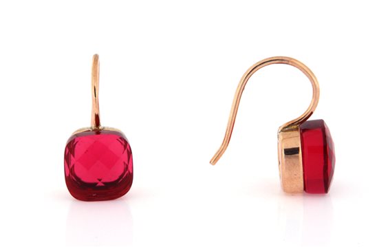 orecchini in argento 925 placcato oro rosa con quarzo rosso. Montatura tipo nudo. Taglio briolè.