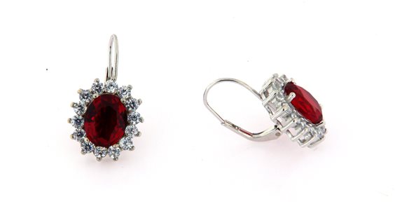 Orecchini in argento rodiato 925 con agata rossa centrale e zirconi attorno. Chiusura a monachella