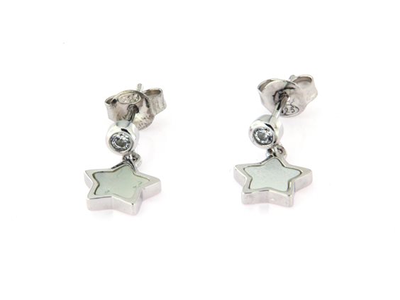 orecchini pendenti in argento 925 con zircone e madreperla a forma di stella