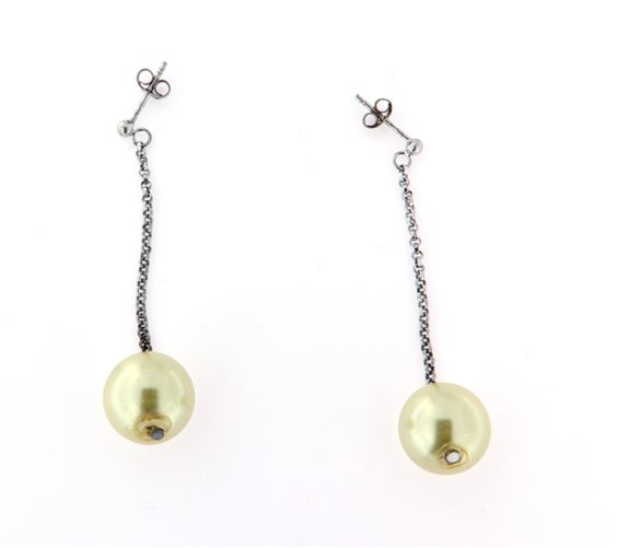 orecchini pendenti in argento 925 con perla colore giallo chiaro