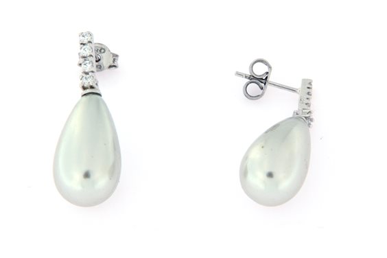 orecchini pendenti in argento 925 con perla a goccia di colore grigio chiaro e zirconi