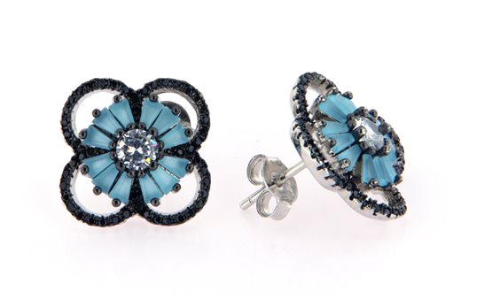 orecchini lobo in argento 925 a forma di quadrifoglio con madreperla azzurra e zircone.