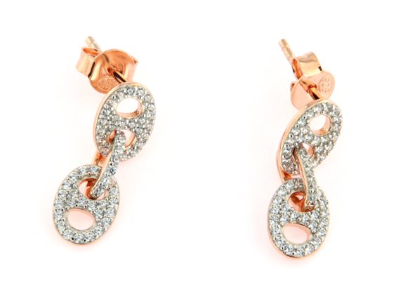 orecchini in argento placcato oro rosa con zirconi. Lavoraziobe tipo maglia marina