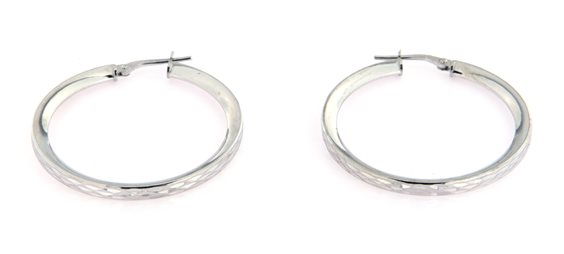 orecchini a cerchio in argento 925 rodiato. Lavorazione diamantata. Diam. interno cm 3