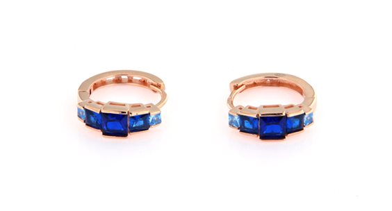 orecchini a cerchio in argento placcato oro rosa con agate azzurre e blu taglio carrè. Chiusura a scatto