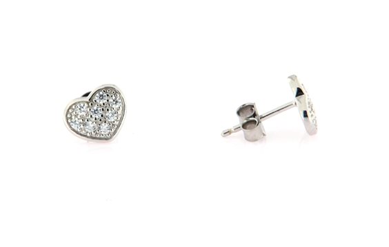 orecchini lobo in argento 925 rodiato a forma di cuore con pavè di zirconi