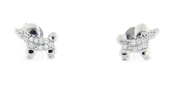 orecchini lobo in argento rodiato 925 con zirconi a forma di cane