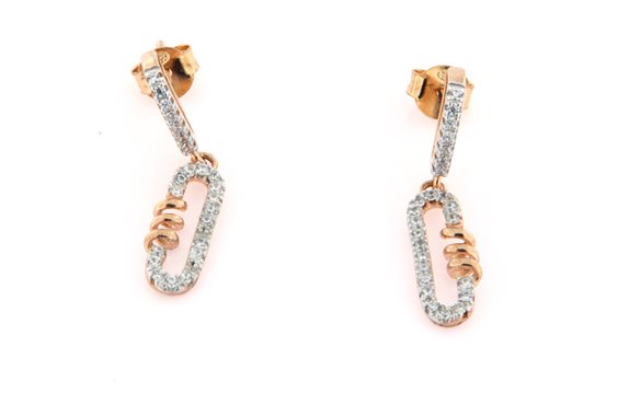 orecchini pendenti in argento 925 placcato oro rosa con zirconi modello spilla