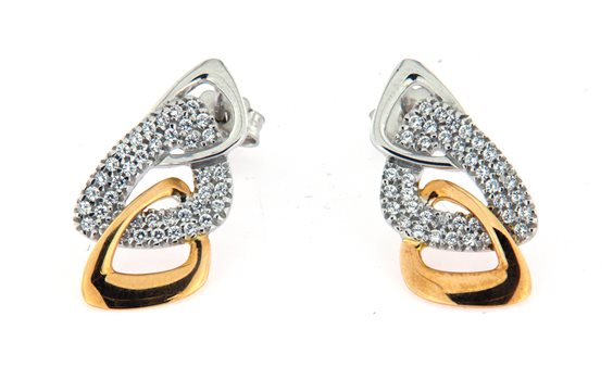 ORECCHINI A LOBO IN ORO BIANCO E ROSA 750% CON ZIRCONI. MISURA CM 2,5 X 1,2