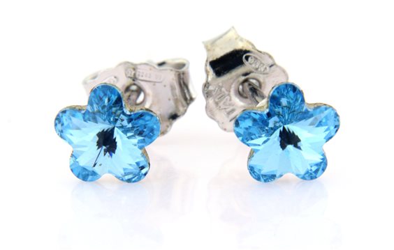 orecchini lobo in argento 925 con cristalli azzurri a forma di fiore