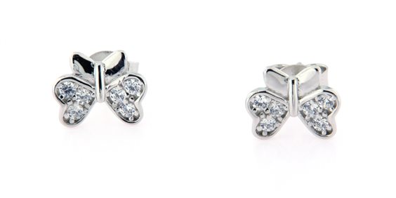 orecchini lobo in argento 925 con zirconi a forma di farfalla
