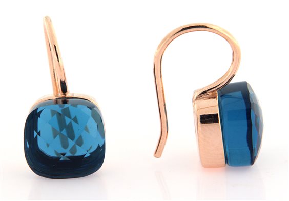 ORECCHINI ARGENTO 925 PLACCATI ORO ROSA CON AGATE BLU TAGLIO BRIOLE'