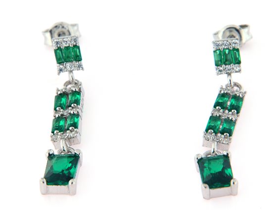 ORECCHINI PENDENTI ARGENTO 925 CON ZIRCONI BIANCHI E VERDI