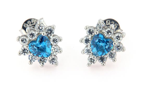 ORECCHINI ARGENTO 925 CON ZIRCONI BIANCHI E AZZURRI A FORMA DI CUORE